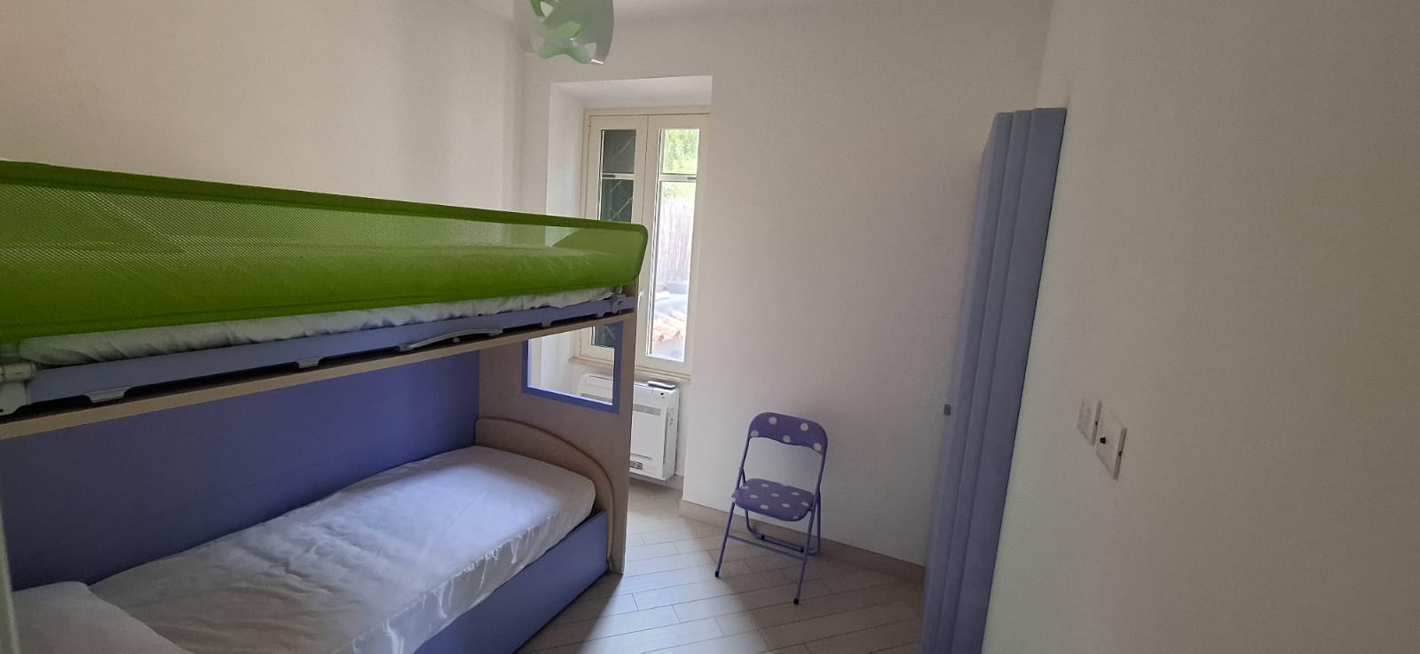 La zona notte include una cameretta con letto a castello e una camera matrimoniale dotata di doccia interna, garantendo comfort e privacy. Il bagno principale è equipaggiato con una doccia elegante. L’appartamento è dotato di impianto di climatizzazione per un clima ideale in ogni stagione e presenta portone ed infissi blindati per la massima sicurezza.
